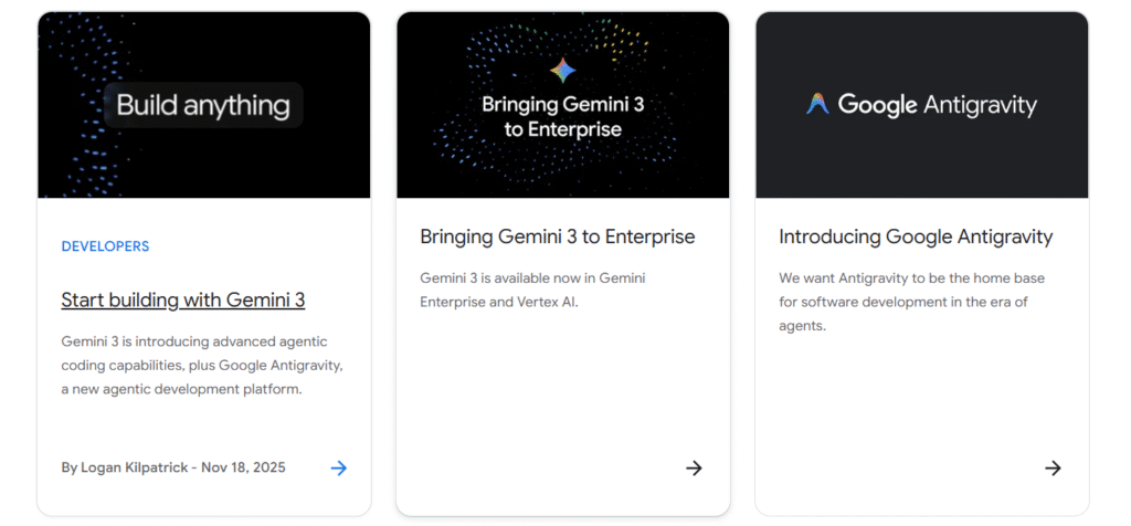 டெவலப்பர்களுக்காக, கூகுள் ஒரு புதிய உருவாக்கச் சூழலை (Developer Environment) அறிமுகப்படுத்தியுள்ளது. இதற்கு ‘கூகுள் ஆன்டிகிராவிட்டி’ (Google Antigravity) என்று பெயரிடப்பட்டுள்ளது. Gemini 3-இன் அதிநவீன குறியீட்டுத் திறன்களைப் பயன்படுத்தி, டெவலப்பர்கள் இப்போது எளிய மொழி வழிமுறைகள் மூலமாகவே முழுச் செயலிகள், வலைத்தளங்கள் மற்றும் 3D கேம்களை உருவாக்க முடியும். இந்த ஆன்டிகிராவிட்டி தளம், செயற்கை நுண்ணறிவு முகவர்களை (Agent-based coding) பயன்படுத்தி, திட்டமிடுதல், குறியீடு எழுதுதல், பிழைகளைச் சரிசெய்தல் மற்றும் சோதித்தல் என ஒரு முழுமையான மென்பொருள் மேம்பாட்டுச் சுழற்சியை ஆள் நடமாட்டம் இன்றி தானாகவே மேற்கொள்ளும் திறனைக் கொண்டுள்ளது. இது மென்பொருள் உருவாக்க வேகத்தை முன்னெப்போதும் இல்லாத வகையில் அதிகரிக்க உதவுகிறது.