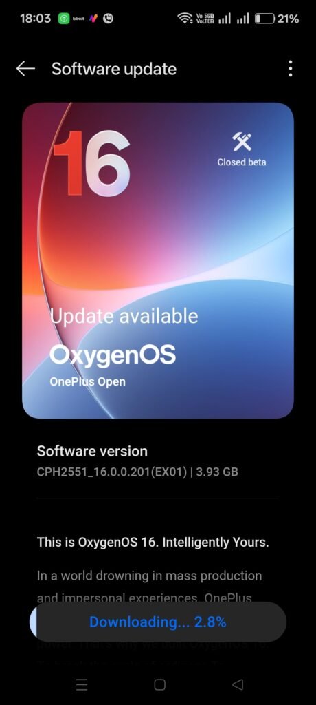 OnePlus Open-க்கான OxygenOS16 அப்டேட் இந்தியாவில் (India) ஏற்கனவே சில பயனர்களுக்கு வெளியிடத் (Rollout) தொடங்கிவிட்டது. இந்த அப்டேட்டின் பில்ட் எண் (Build Number) CPH2551_16.0.0.201(EX01) என்று குறிப்பிடப்பட்டுள்ளது. நவம்பர் 2025 மாதத்தின் ஆரம்பத்திலேயே இது வெளியாகும் என்று முன்னர் அறிவிக்கப்பட்டிருந்த நிலையில், நவம்பர் 7, 2025 அன்று முதல் கட்டமாக (Batch) சில பயனர்களுக்குக் கிடைத்துள்ளது. விரைவில் மற்ற பகுதிகளுக்கும், அனைத்து பயனர்களுக்கும் இந்த அப்டேட் படிப்படியாக விரிவாக்கப்படும் என்று எதிர்பார்க்கப்படுகிறது. இந்த அப்டேட்டைப் பெற, பயனர்கள் தங்கள் சாதனத்தில் (Device) ‘Settings > System & Updates > Software Update’ என்ற பகுதிக்குச் சென்று சரிபார்க்கலாம்.
